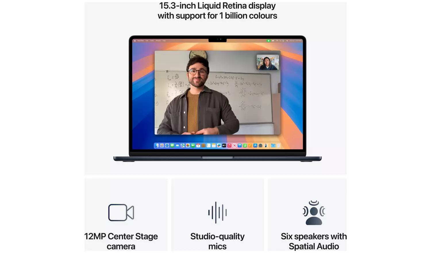 Take crystal-clear video calls with the 12MP Centre Stage camera, enhanced by three microphones and four speakers with Spatial Audio.
