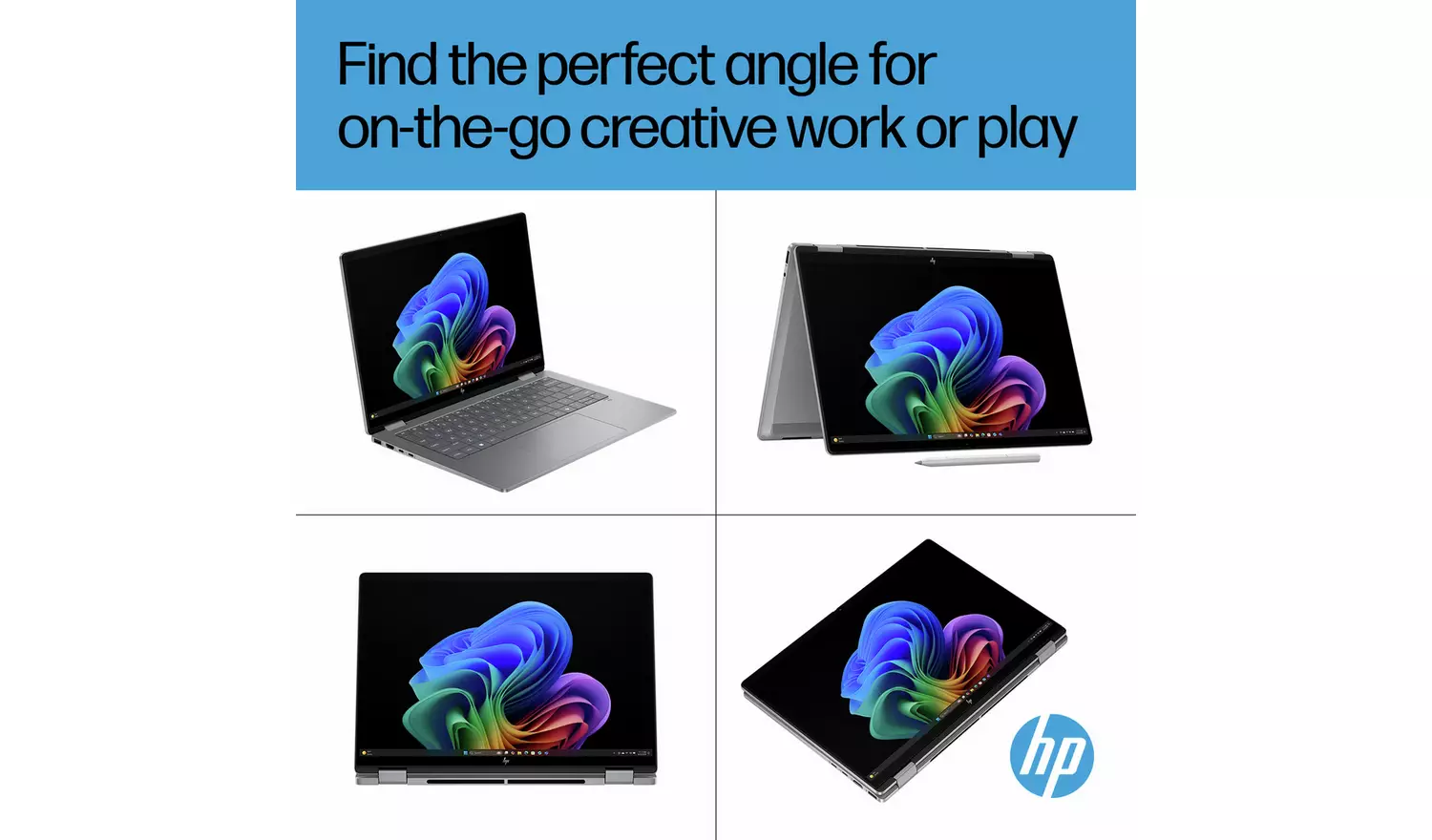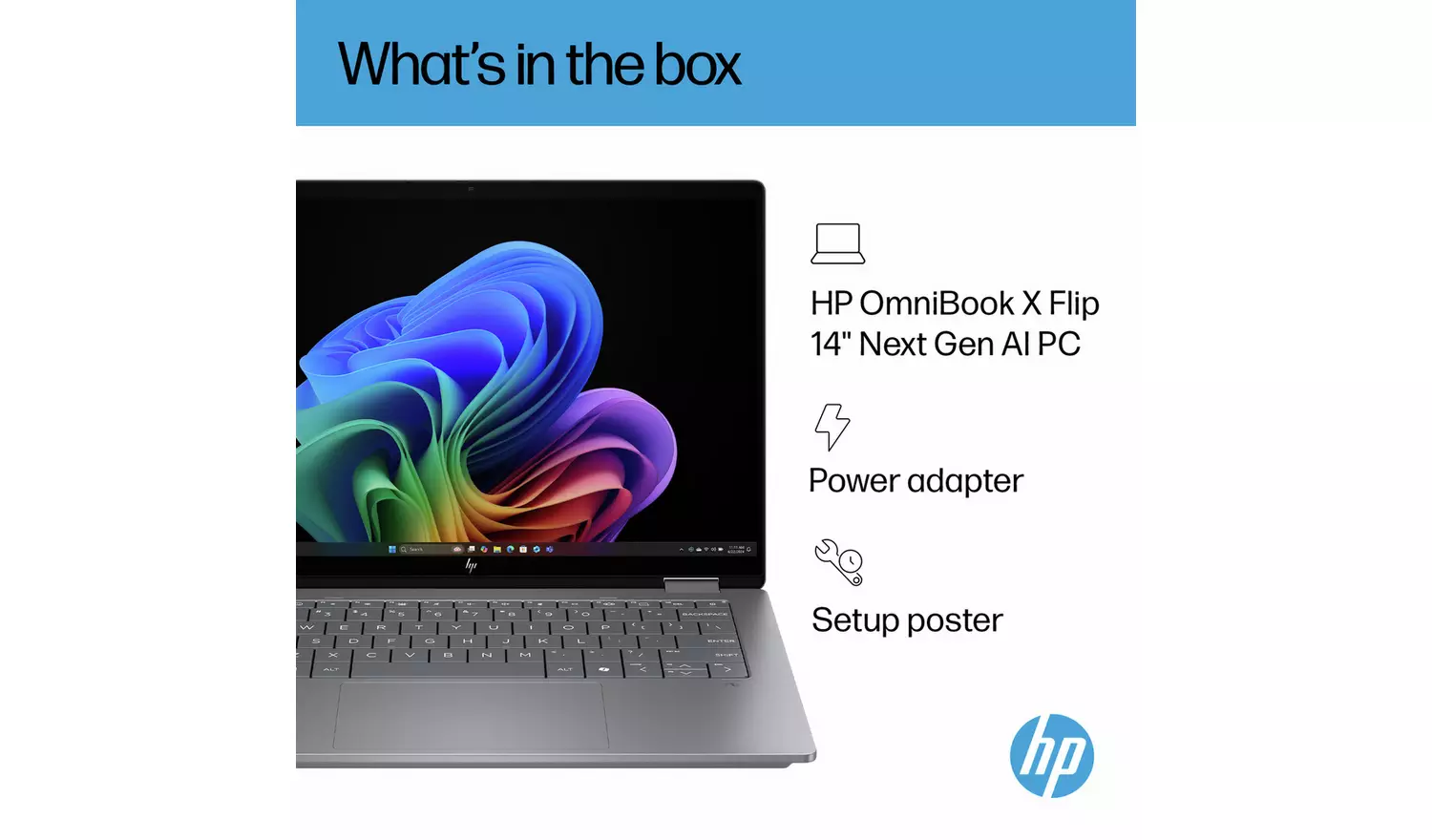 Create from any angle with the HP Next Gen AI PC. The ultra-portable OmniBook X Flip 14 is equipped with a high-resolution, edge-to-edge display that delivers crisp, vibrant visuals. Featuring an AI-powered processor and a fast-charging battery, it offers the speed, performance, and all-day endurance needed to work and play wherever you are.