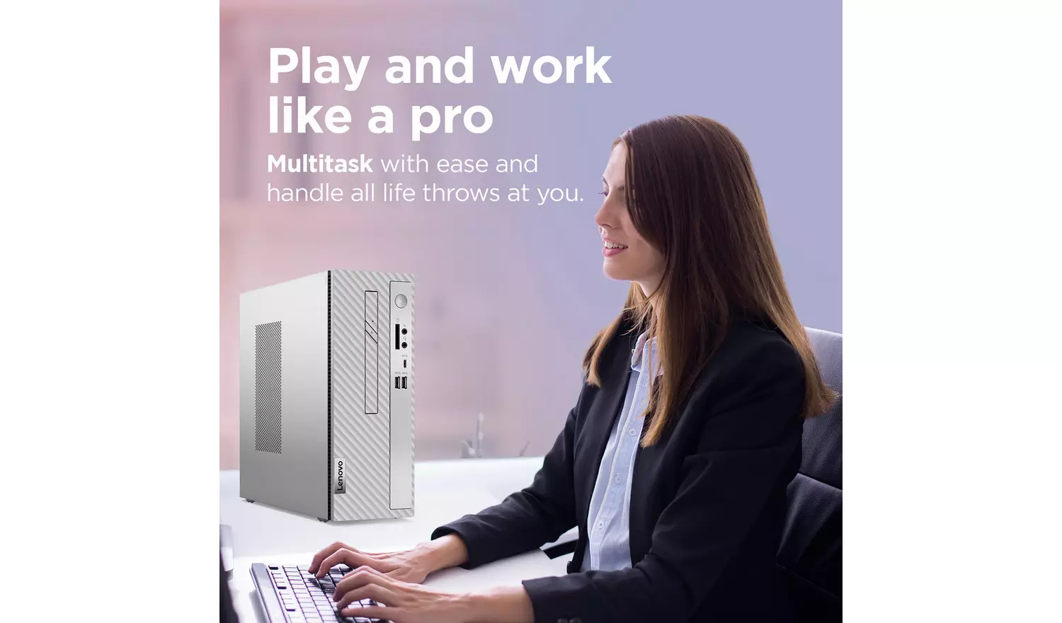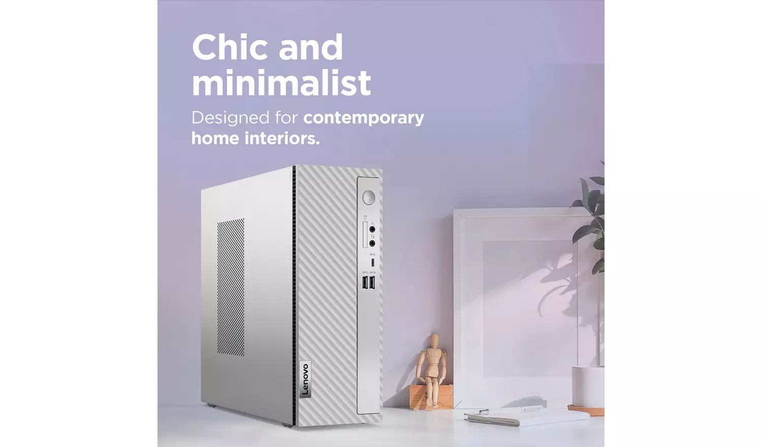 No need to compromise on performance with the space-saving IdeaCentre 3. Powered by the latest 13th Gen Intel Core i5 processor, you can edit, stream, and listen to music all at once without a hitch.